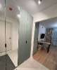Прихожая со шкафом-купе, большим зеркалом, вешалкой и ящиками для обуви. В прихожей висят картины, написанные натуральными красками известными художниками.