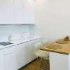 Дизайн квартиры выполнен в скандинавском стиле. Натуральная текстура дерева, обилие света и лаконичность вдохновлены простотой и ясностью скандинавского дизайна. Покрашенные в белый цвет стены визуально увеличивают пространство и создают нейтральный фон. Светлый дубовый пол напоминает о североевропейских интерьерах. Белая дверь и плинтус в цвет стен подчеркивают минимализм скандинавского стиля.